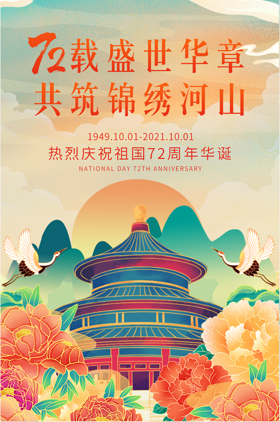 我們在星光燦爛傾聽時代的鐘聲,我們在漫漫長夜中等待黎明的曙光。 祖國的現(xiàn)在是無數(shù)人前仆后繼、嘔心瀝血的成果;中國人用自己的計(jì)量挺起了中華古老的長城向世界發(fā)出了最為雄健豪壯的聲音:中國人民從此站起來了。七十二年前新中國成立,今天中國正在騰飛。在此我們相對祖國母親說一句,生日快樂。